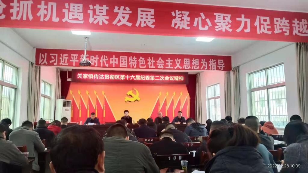 2月28日,关家镇召开机关干部大会,传达中共安康市汉滨召开的第十六届纪律检查委员会第二次全体会议精神,镇全体机关干部、各村(社区)第一书记参加会议。