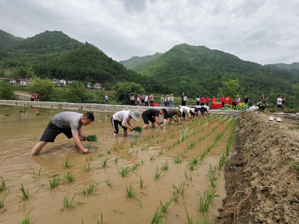 为更好贯彻落实习近平总书记“中国人的饭碗任何时候都要牢牢端在自己手中,饭碗主要装中国粮”要求,实施“藏粮于地、藏粮于技”战略,盯紧“稳粮、扩豆、增油”目标任务,充分发挥北山粮仓中原稻油、稻鱼示范基地引领带动作用,唱好中原农业生产“四季歌”,紧盯“粮袋子”、拎好“油瓶子”、提稳“菜篮子”,季季接续、茬茬压紧、环环紧扣,不空田地,不误农时,为国家粮食安全打基础,为群众年度丰收添生机,以实际行动推动中原产业振兴。5月30日,中原镇党委政府组织干部群众自愿开展“北山粮仓·稻香中原”插秧节系列活动,镇纪委党员干部踊跃报名,全员参与田间插秧助农活动,帮助抢抓水稻播种,助力农户稻鱼产业。